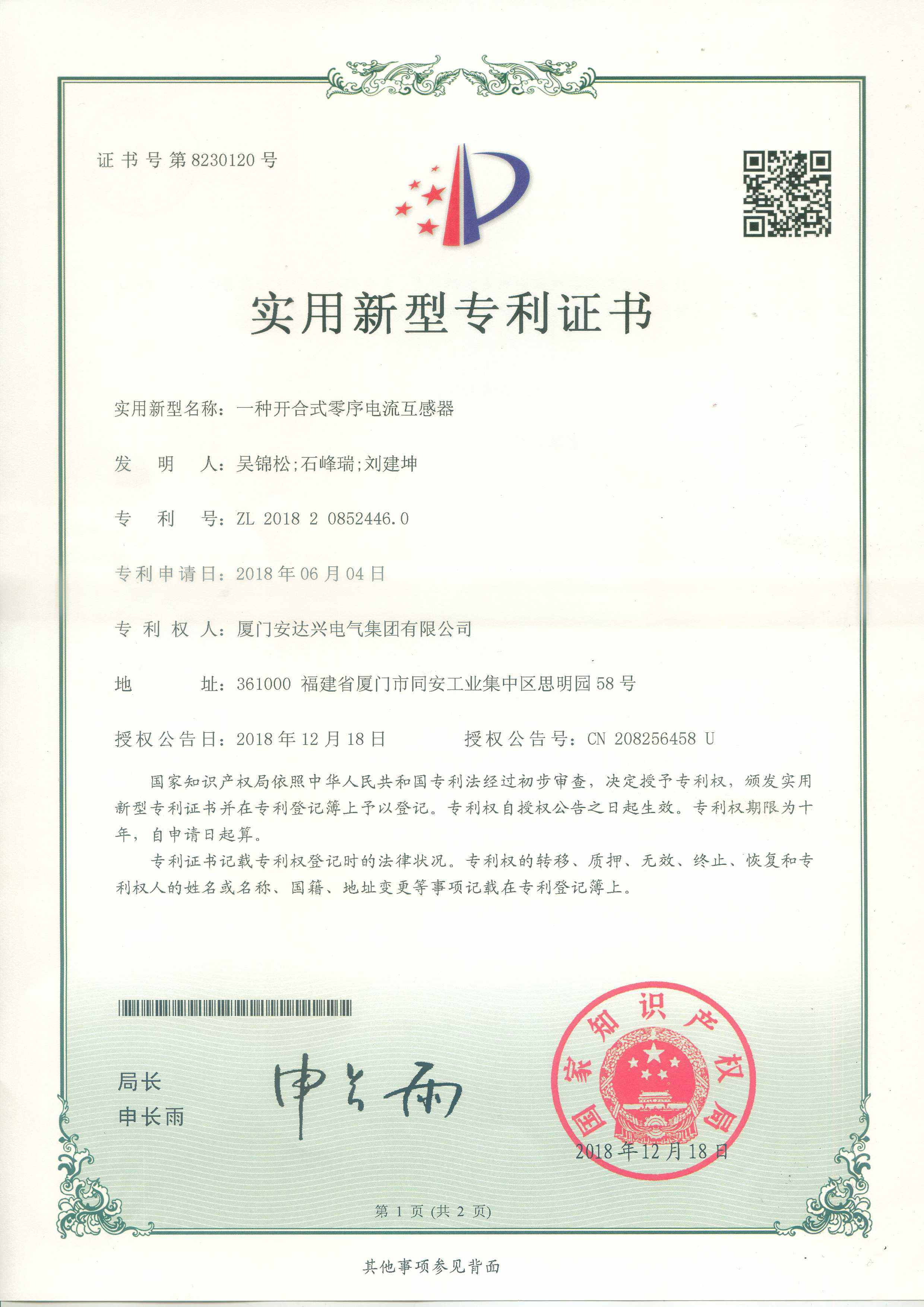 廈門安達(dá)興電氣集團(tuán)有限公司喜獲”一種開合式零序電流互感器“專利分類: 行業(yè)動態(tài)2019年1月9日文章導(dǎo)航上一篇上一篇文章:廈門安達(dá)興電氣集團(tuán)有限公司喜獲”短路接地故障指示器“專利下一篇下一篇文章:廈門安達(dá)興電氣集團(tuán)有限公司喜獲”一種雙金屬片和脫扣裝置“專利相關(guān)文章安達(dá)興集團(tuán)危廢管理計(jì)劃和季度自查表2022年7月15日安達(dá)興電氣取得若干新專利2022年5月21日安達(dá)興自動化獲取新專利—“一種氣動控制系統(tǒng)專用閥結(jié)構(gòu)”2022年5月21日歡迎來訪我司—中國高等教育博覽會(2019?春)福州–展位#9Y152019年5月8日2019年美國匹茲堡PITTCON 分析儀器展會圓滿結(jié)束2019年4月2日第70屆美國匹茲堡分析化學(xué)及實(shí)驗(yàn)室展 PITTCON 介紹2019年2月14日