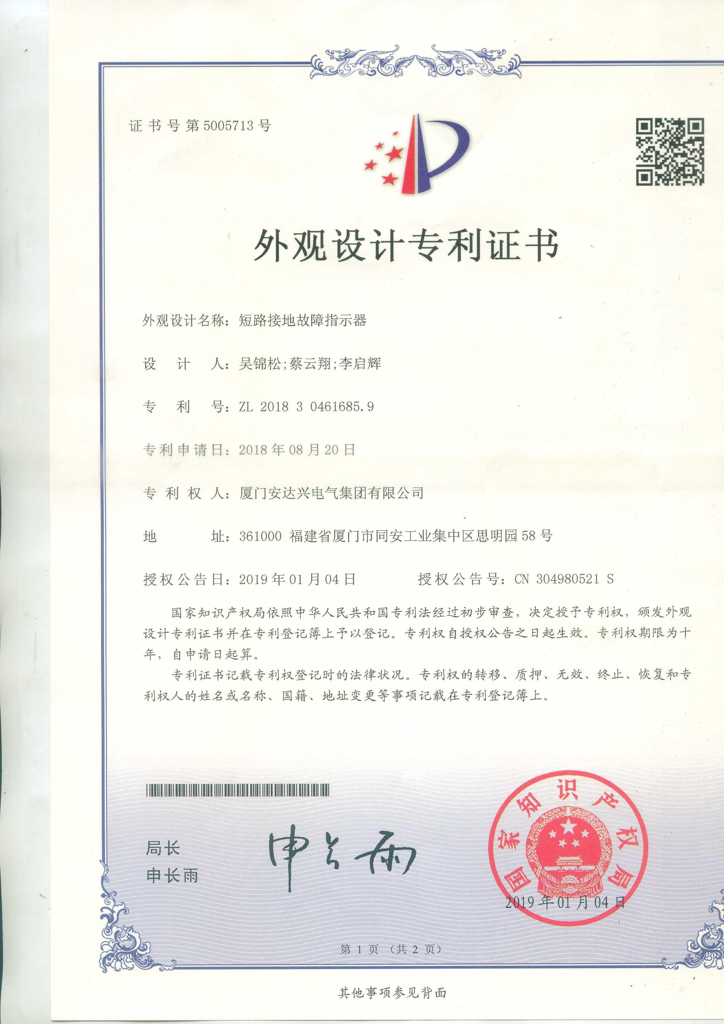 廈門安達(dá)興電氣集團(tuán)有限公司喜獲”短路接地故障指示器“專利分類: 行業(yè)動態(tài)2019年1月31日文章導(dǎo)航上一篇上一篇文章:廈門安達(dá)興自動化設(shè)備有限公司再獲國家“高新技術(shù)企業(yè)”認(rèn)證下一篇下一篇文章:廈門安達(dá)興電氣集團(tuán)有限公司喜獲”一種開合式零序電流互感器“專利相關(guān)文章安達(dá)興集團(tuán)危廢管理計劃和季度自查表2022年7月15日安達(dá)興電氣取得若干新專利2022年5月21日安達(dá)興自動化獲取新專利—“一種氣動控制系統(tǒng)專用閥結(jié)構(gòu)”2022年5月21日歡迎來訪我司—中國高等教育博覽會(2019?春)福州–展位#9Y152019年5月8日2019年美國匹茲堡PITTCON 分析儀器展會圓滿結(jié)束2019年4月2日第70屆美國匹茲堡分析化學(xué)及實驗室展 PITTCON 介紹2019年2月14日