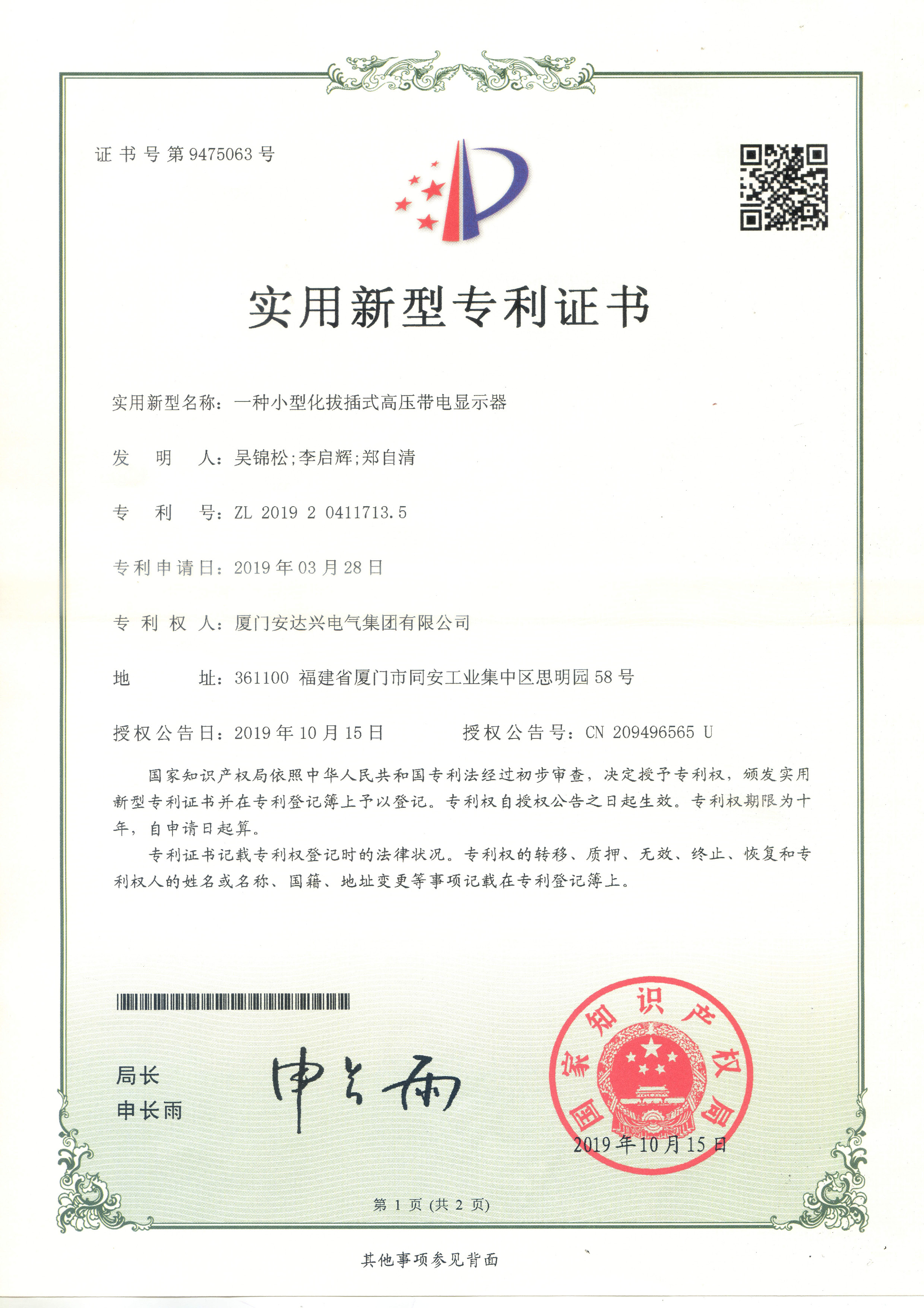 廈門安達(dá)興電氣集團(tuán)有限公司喜獲“一種小型化拔插式高壓帶電顯示器”專利 http://www.thelandcode.com/news/1274/ Thu, 07 Nov 2019 08:28:30 +0000 http://www.thelandcode.com/?p=1274