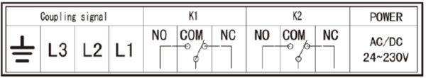 | K1 | NO | 帶電輸入,常開節(jié)點 | 當任意一項帶電時,K1動作,NO-COM 導(dǎo)通, NC-COM斷開。 |