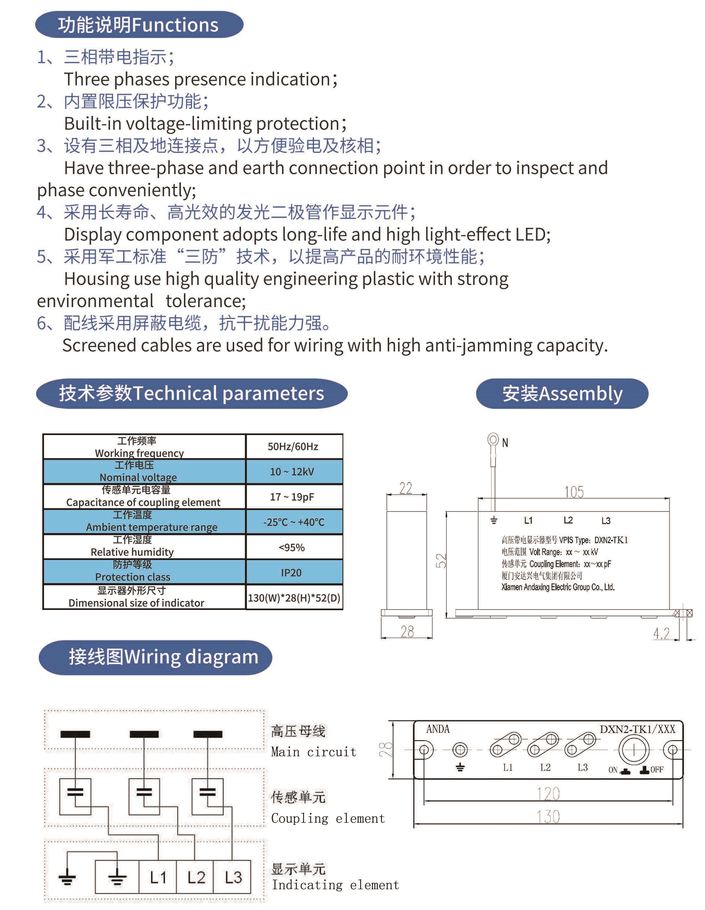 3-40.5kV Live Voltage Indicating System for Cubicles—DXN2-TK1